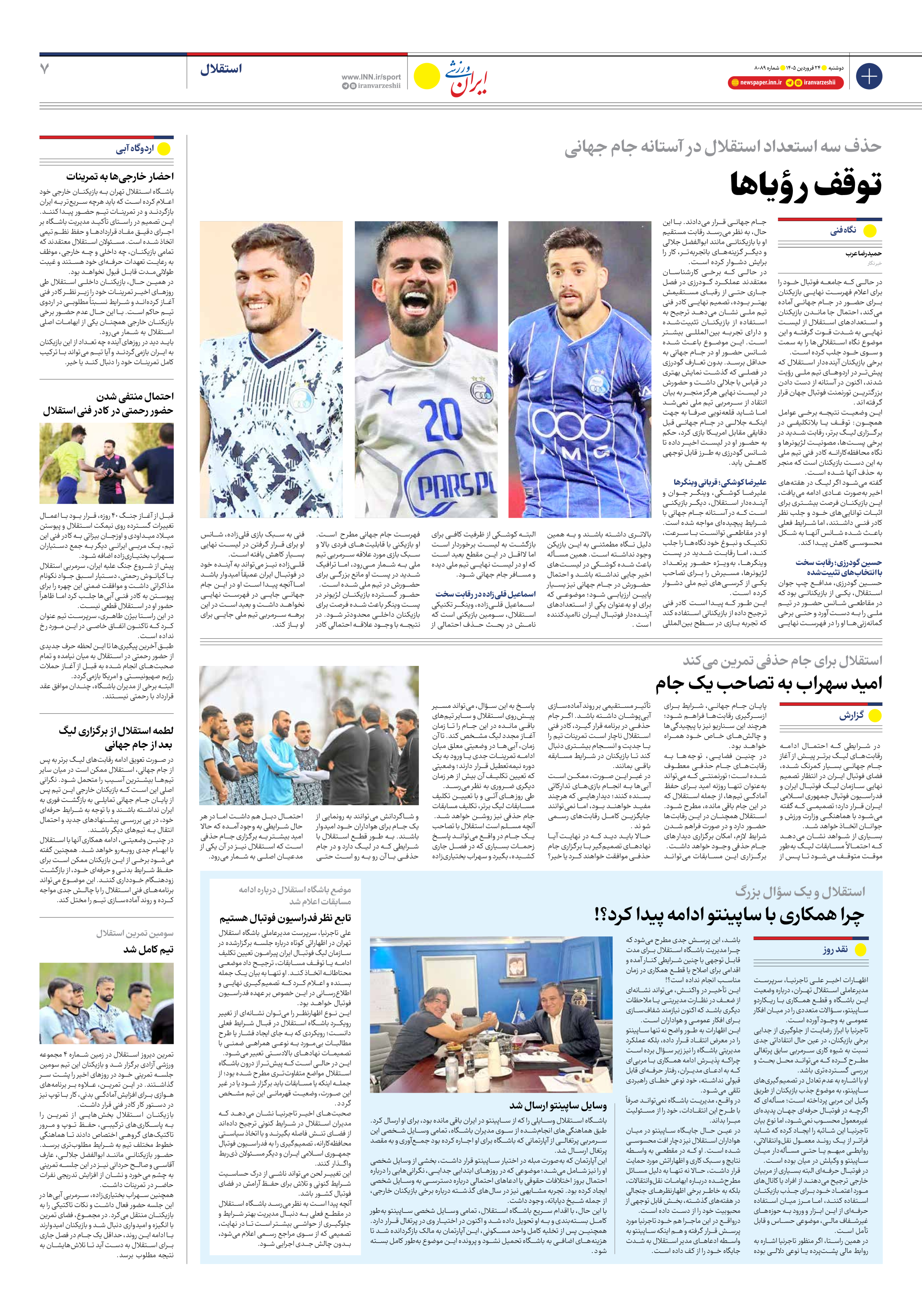 روزنامه ایران ورزشی - شماره هشت هزار و هشتاد و نه - ۲۴ فروردین ۱۴۰۵ - صفحه ۷