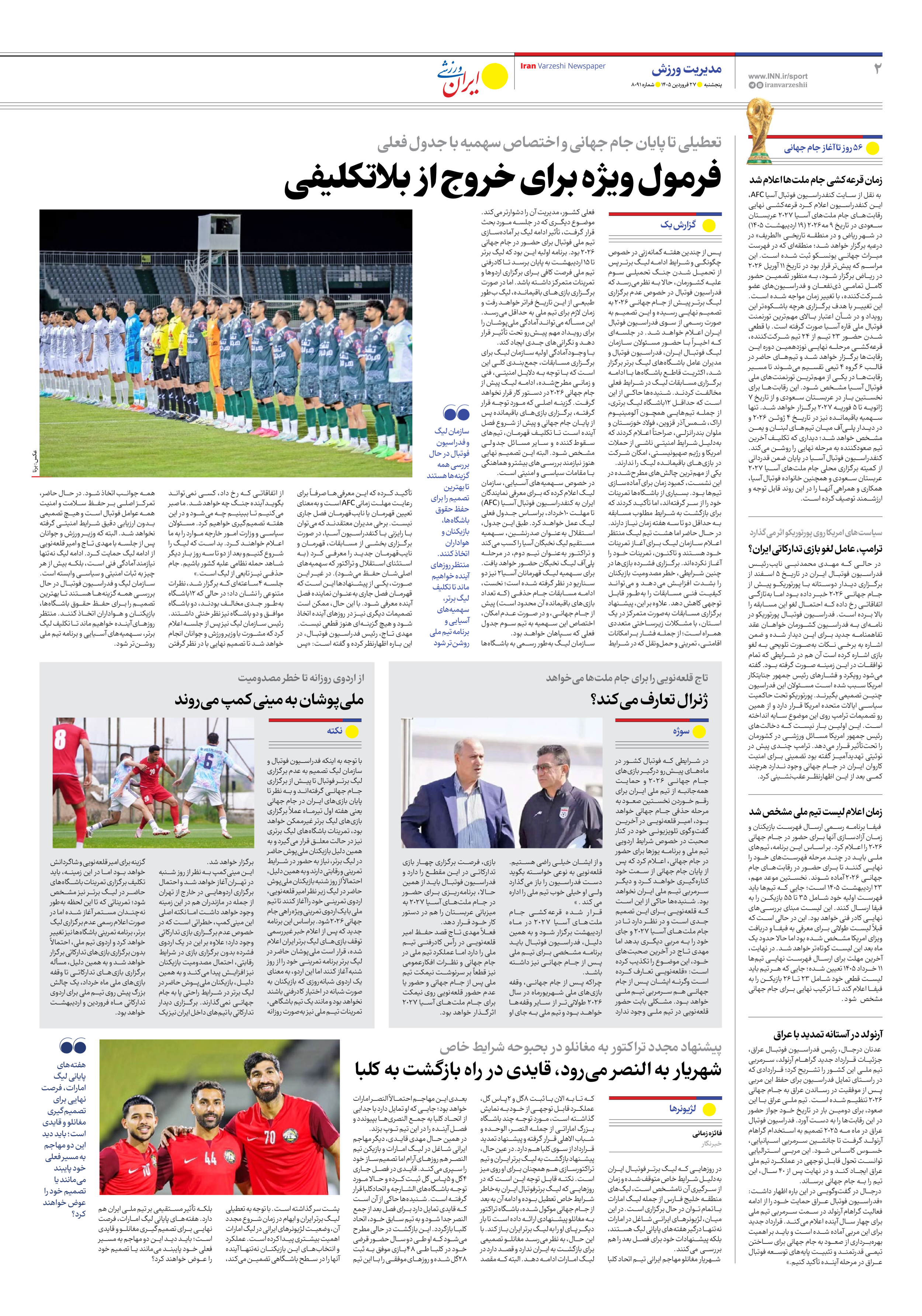 روزنامه ایران ورزشی - شماره هشت هزار و نود و یک - ۲۷ فروردین ۱۴۰۵ - صفحه ۲