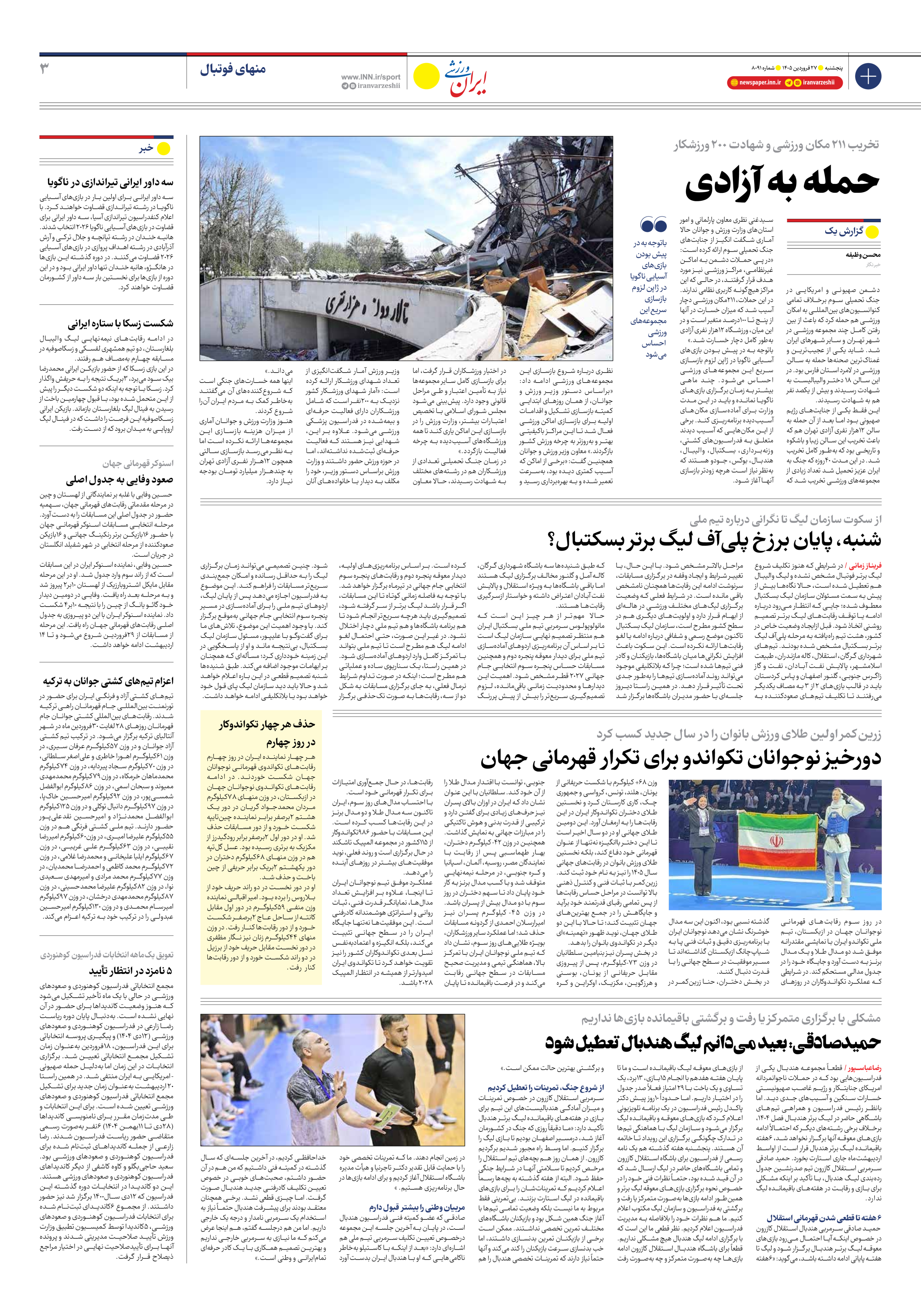 روزنامه ایران ورزشی - شماره هشت هزار و نود و یک - ۲۷ فروردین ۱۴۰۵ - صفحه ۳