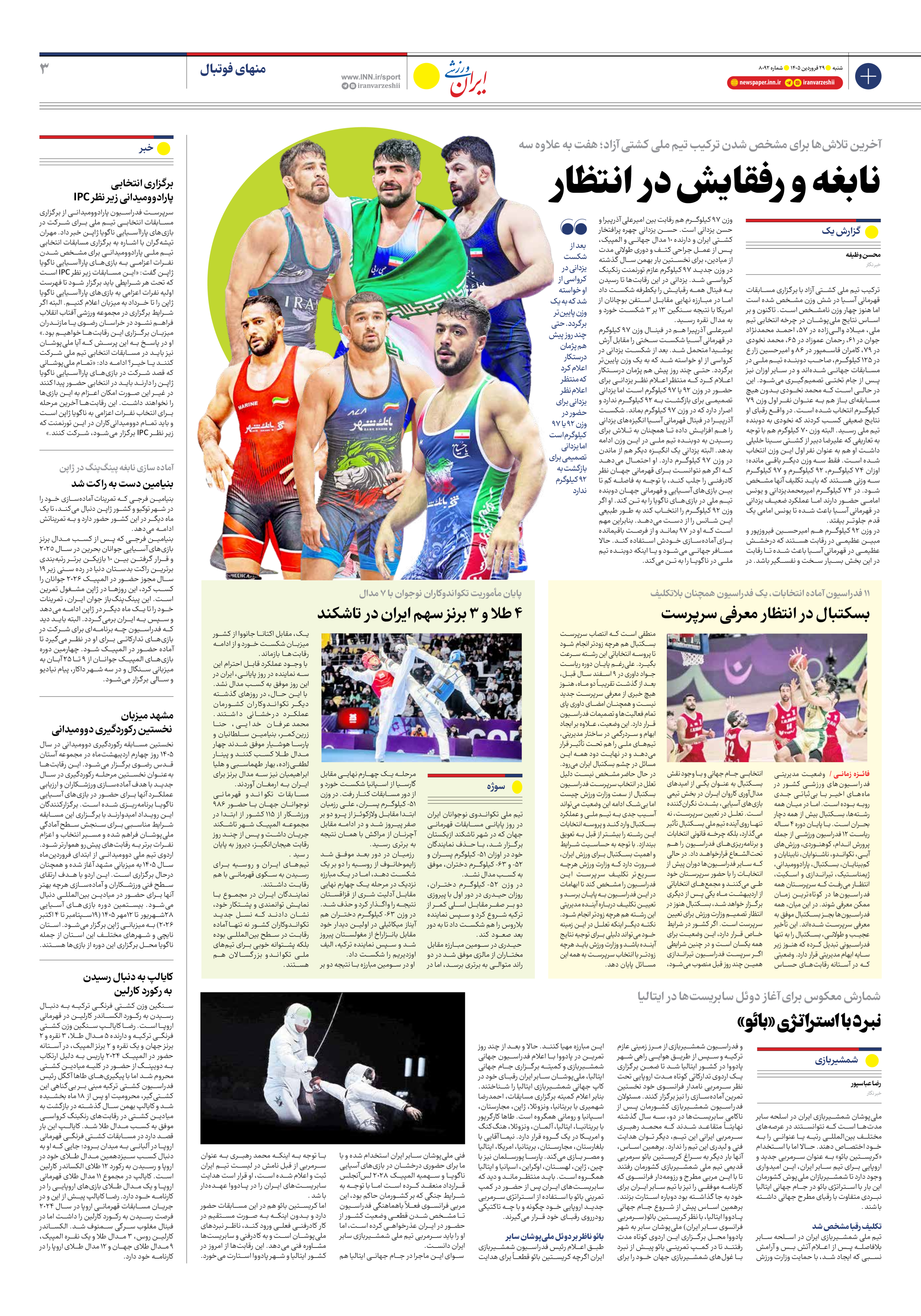 روزنامه ایران ورزشی - شماره هشت هزار و نود و دو - ۲۹ فروردین ۱۴۰۵ - صفحه ۳