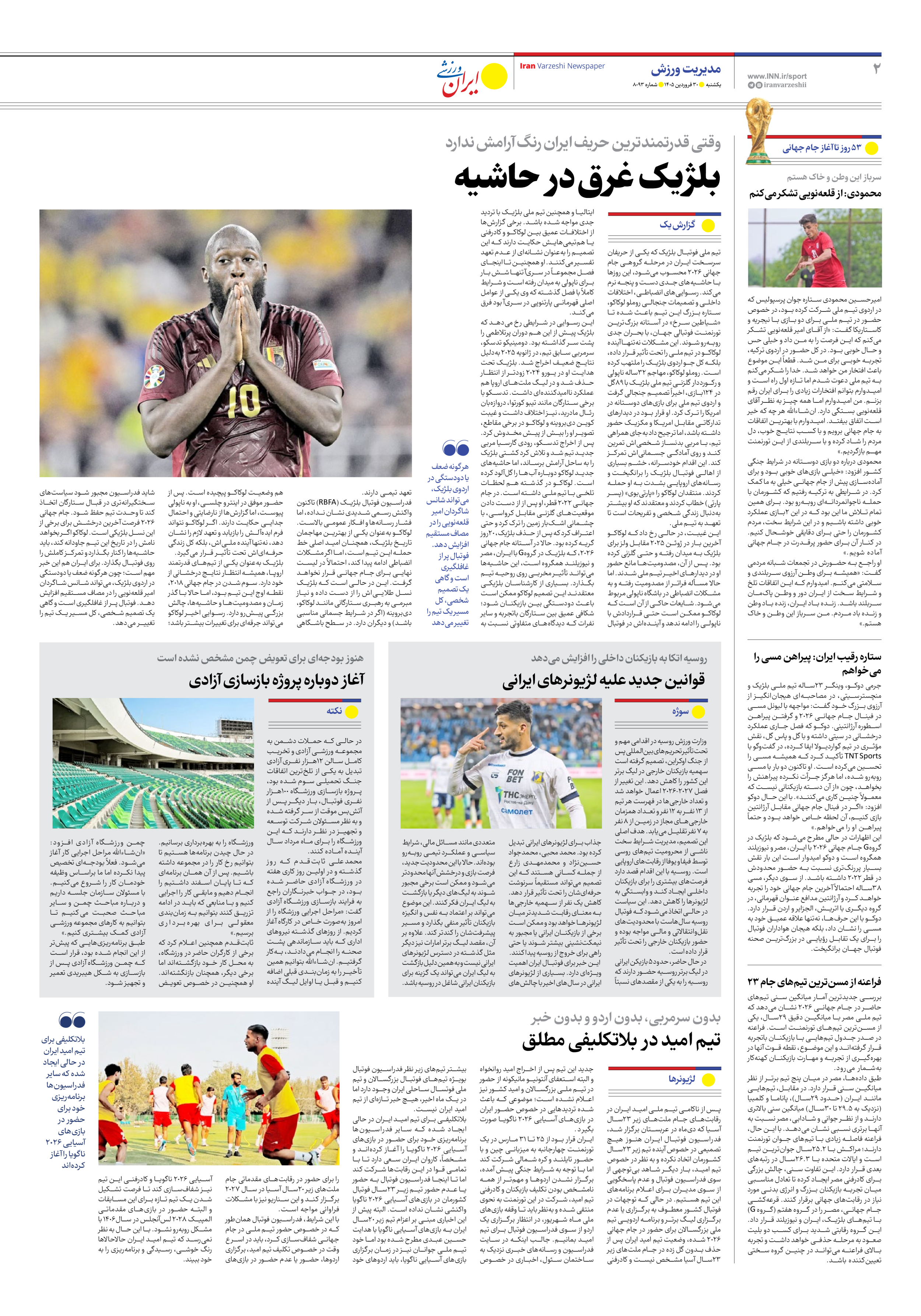 روزنامه ایران ورزشی - شماره هشت هزار و نود و سه - ۳۰ فروردین ۱۴۰۵ - صفحه ۲