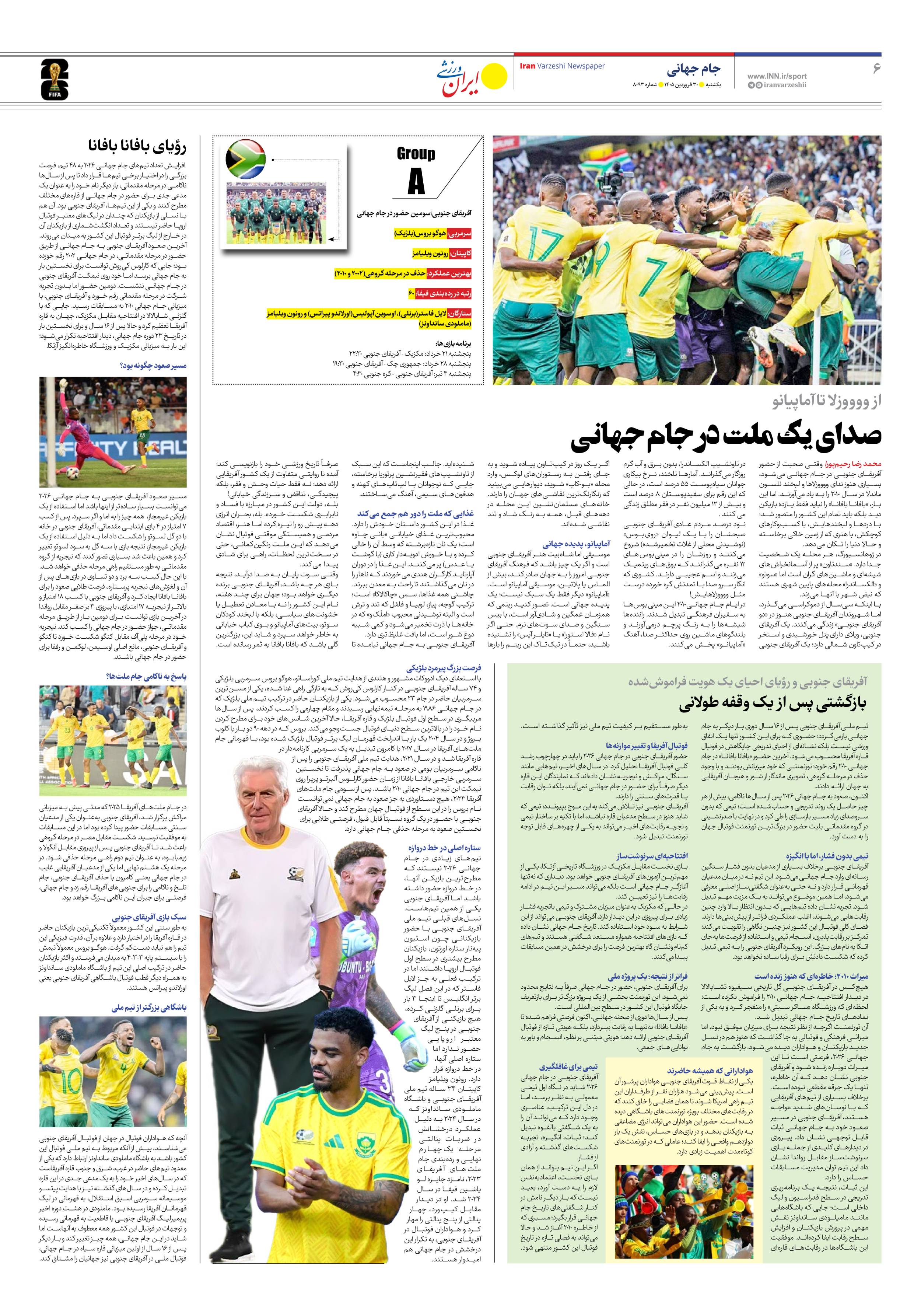 روزنامه ایران ورزشی - شماره هشت هزار و نود و سه - ۳۰ فروردین ۱۴۰۵ - صفحه ۶