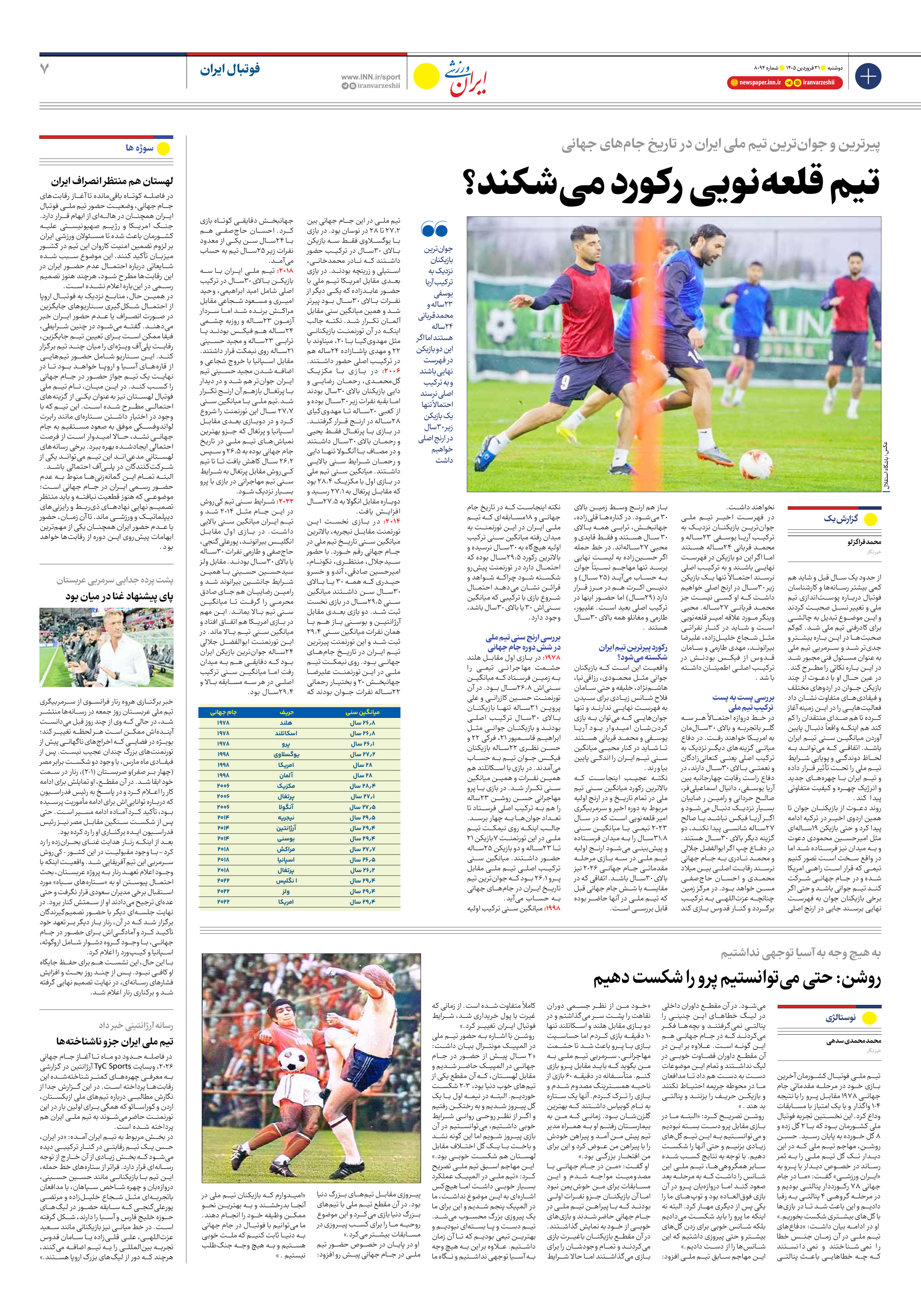 روزنامه ایران ورزشی - شماره هشت هزار و نود و چهار - ۳۱ فروردین ۱۴۰۵ - صفحه ۷