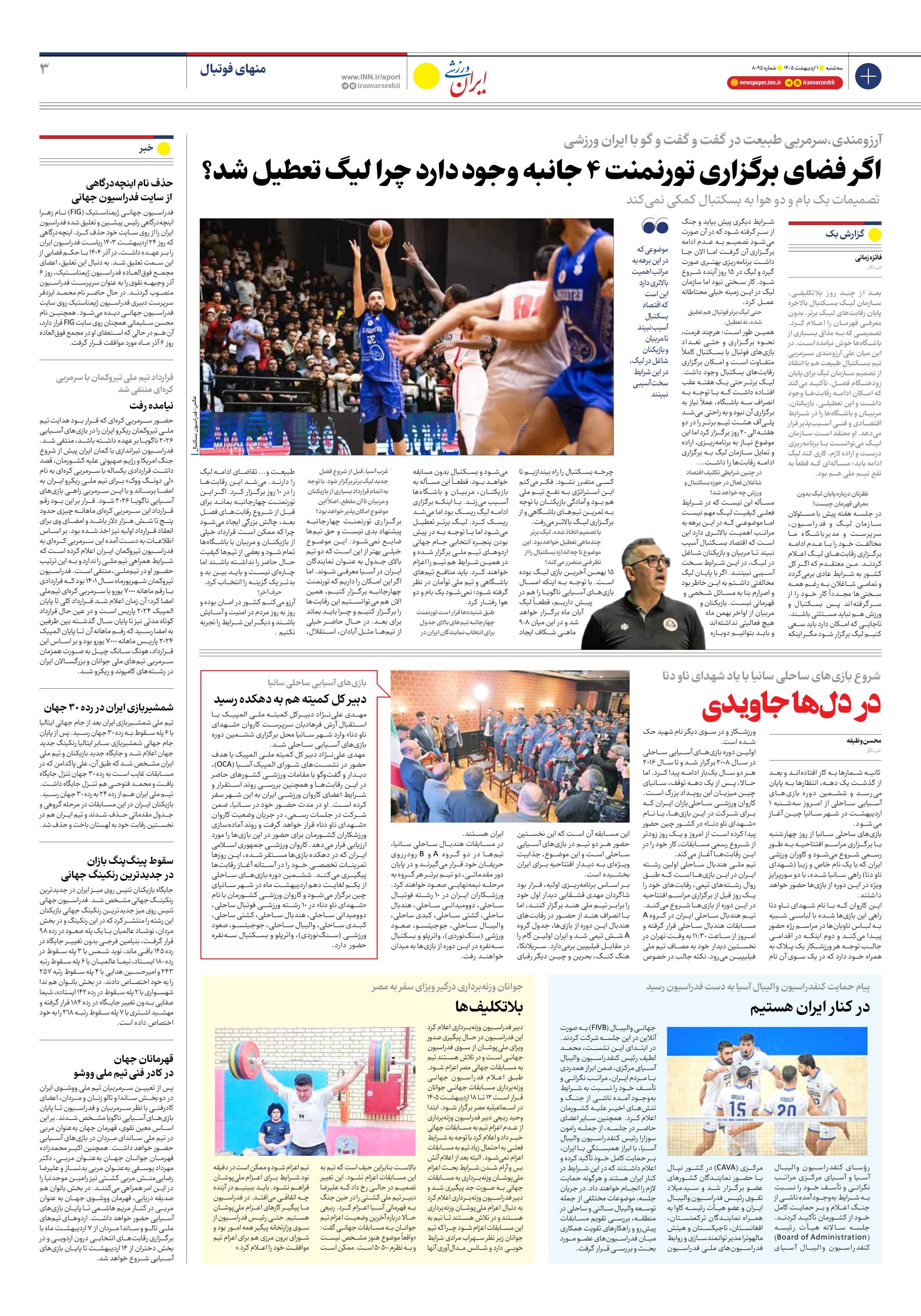 روزنامه ایران ورزشی - شماره هشت هزار و نود و پنج - ۰۱ اردیبهشت ۱۴۰۵ - صفحه ۳