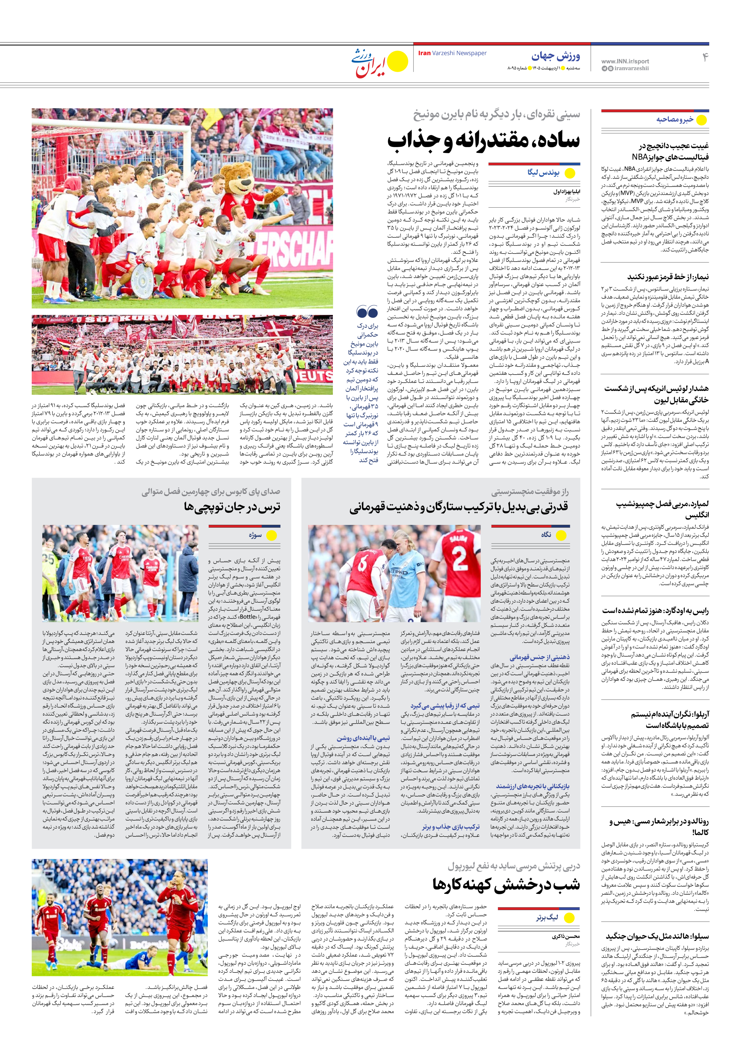 روزنامه ایران ورزشی - شماره هشت هزار و نود و پنج - ۰۱ اردیبهشت ۱۴۰۵ - صفحه ۴