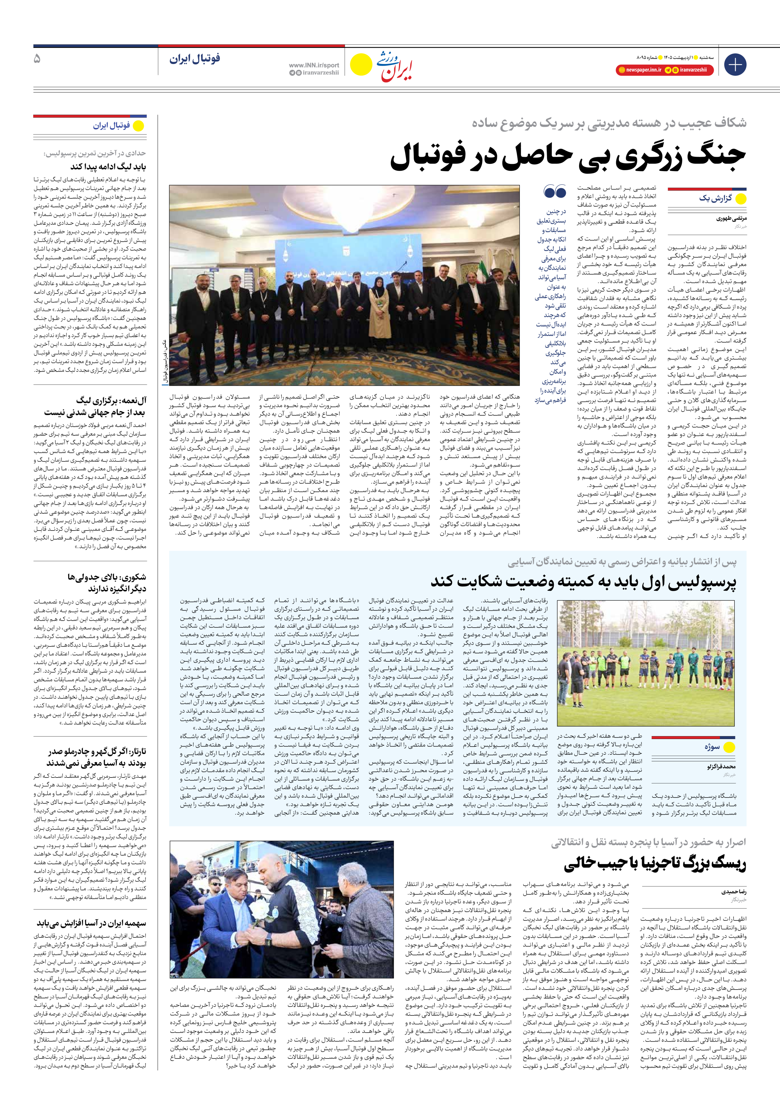 روزنامه ایران ورزشی - شماره هشت هزار و نود و پنج - ۰۱ اردیبهشت ۱۴۰۵ - صفحه ۵