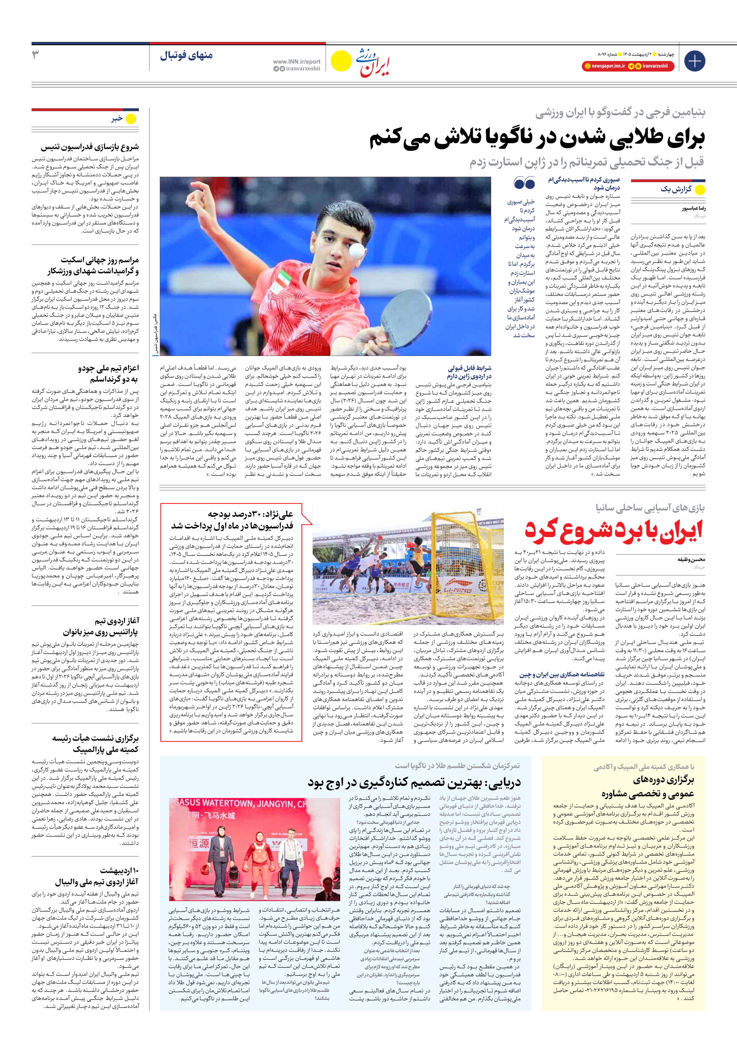 روزنامه ایران ورزشی - شماره هشت هزار و نود و شش - ۰۲ اردیبهشت ۱۴۰۵ - صفحه ۳