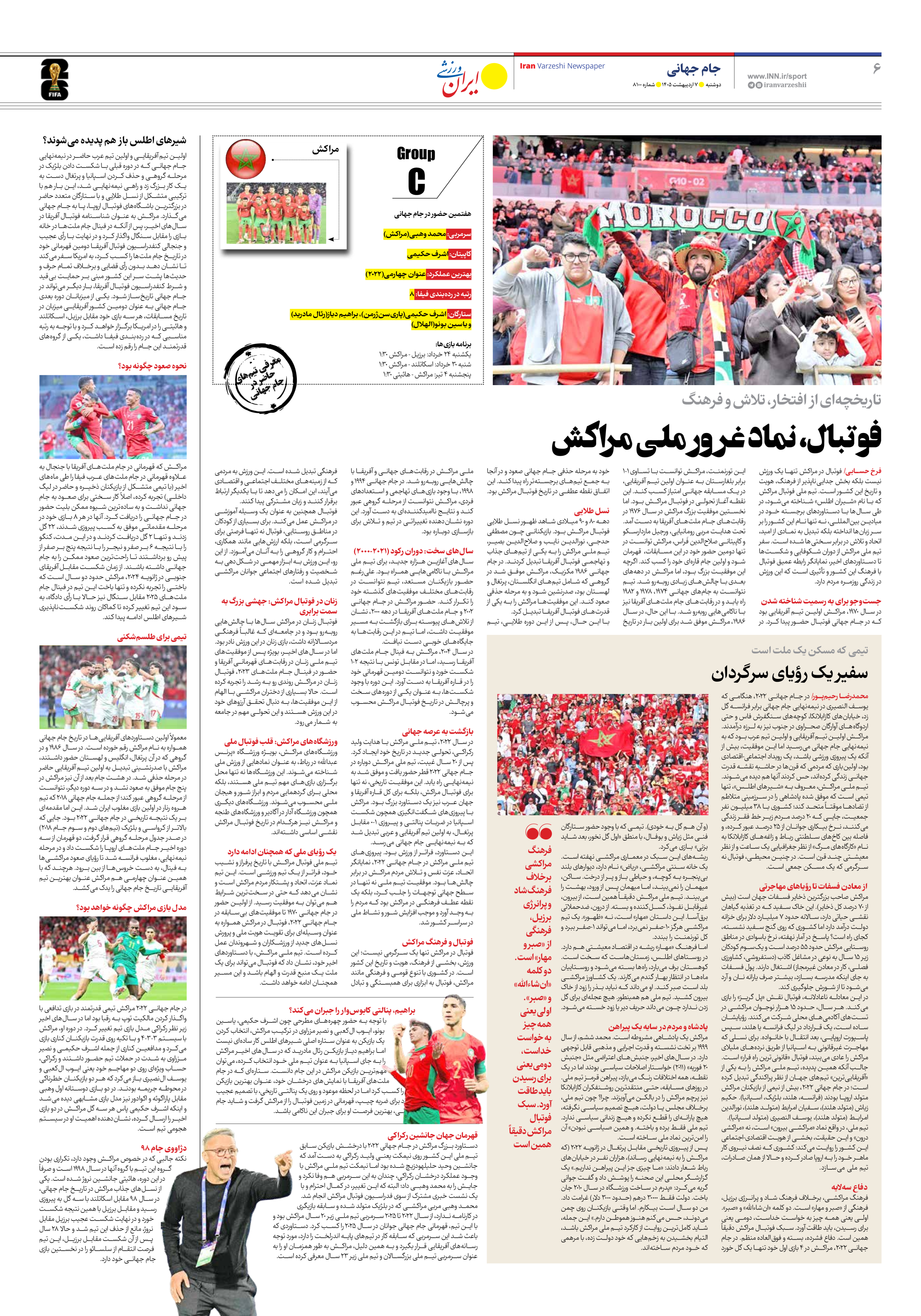 روزنامه ایران ورزشی - شماره هشت هزار و صد - ۰۷ اردیبهشت ۱۴۰۵ - صفحه ۶