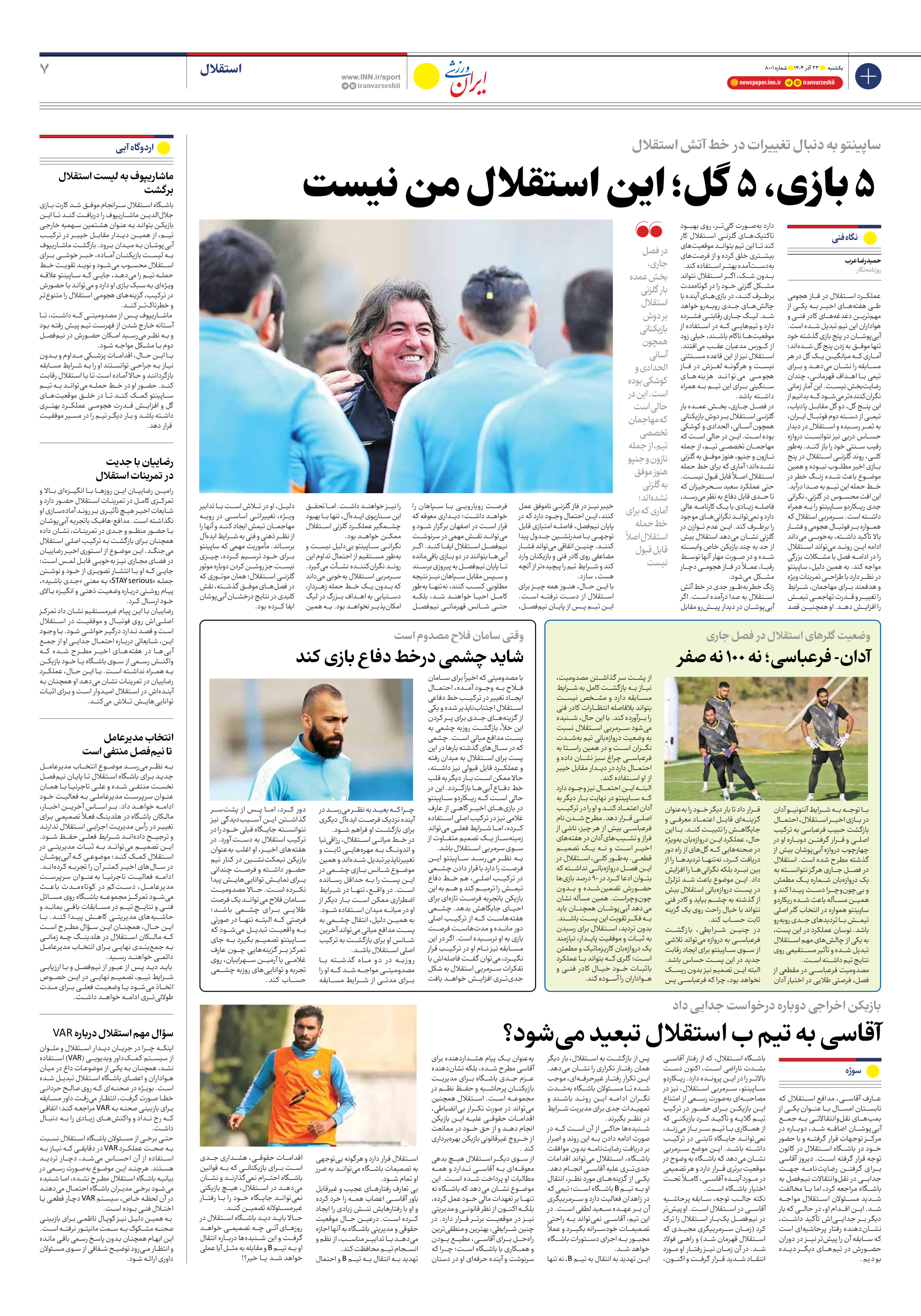 روزنامه ایران ورزشی - شماره هشتاد و هشت هزار و یک - ۲۳ آذر ۱۴۰۴ - صفحه ۷